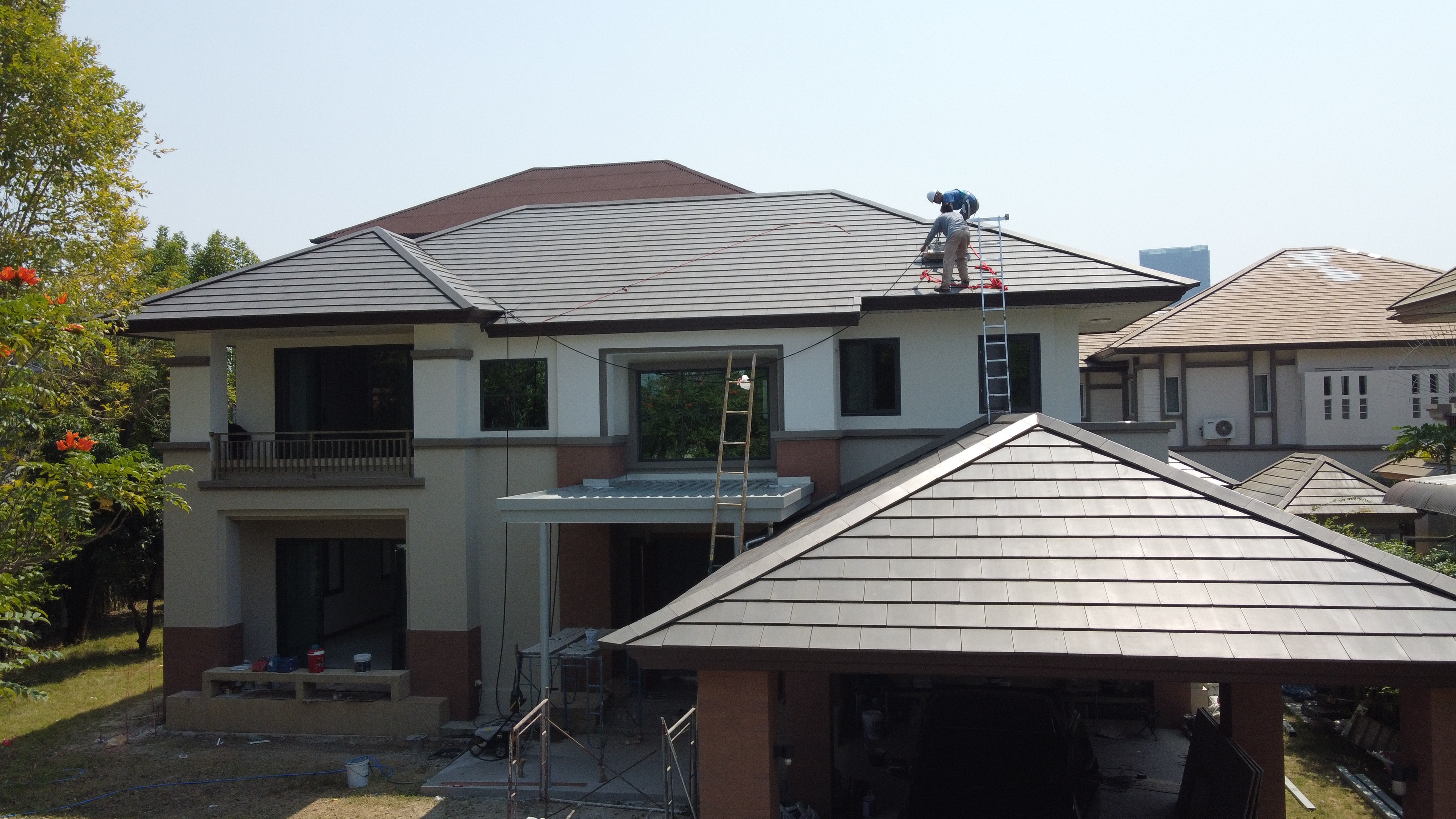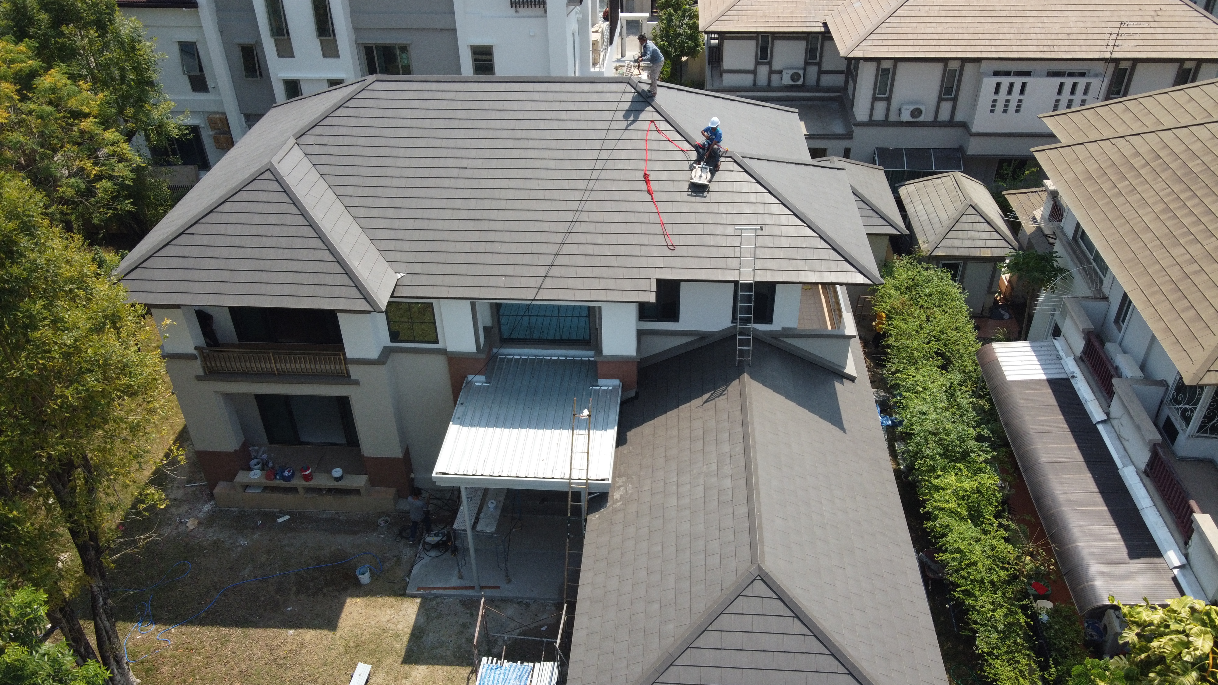 งานพ่นสีหลังคาบ้าน ใช้สีป้องกันความร้อนและทนต่อสภาพอากาศ เพื่อให้หลังคามีความสวยงามและทนทาน